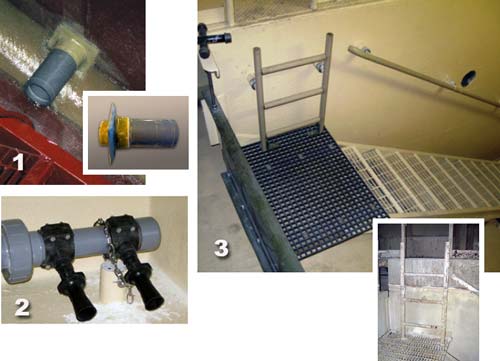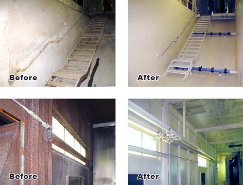 3. Fiberglass Handrail, Ladder and Gratting - Traditional equipment was replaced with fabricated fiberglass. Shown right, the area before replacement.