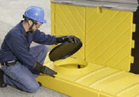 Indoor Models help facilities comply with newly-revised SPCC (Spill Prevention, Control and Countermeasures) Regulations, EPA Container Storage Regulation 40 CFR 264.175, 264.177(c) and 265.177(c). Outdoor Models comply with these regulations and Stormwater Management Regulations (NPDES). Outdoor Models are considered a "Best Management Practice" (BMP) for providing effective stormwater management.